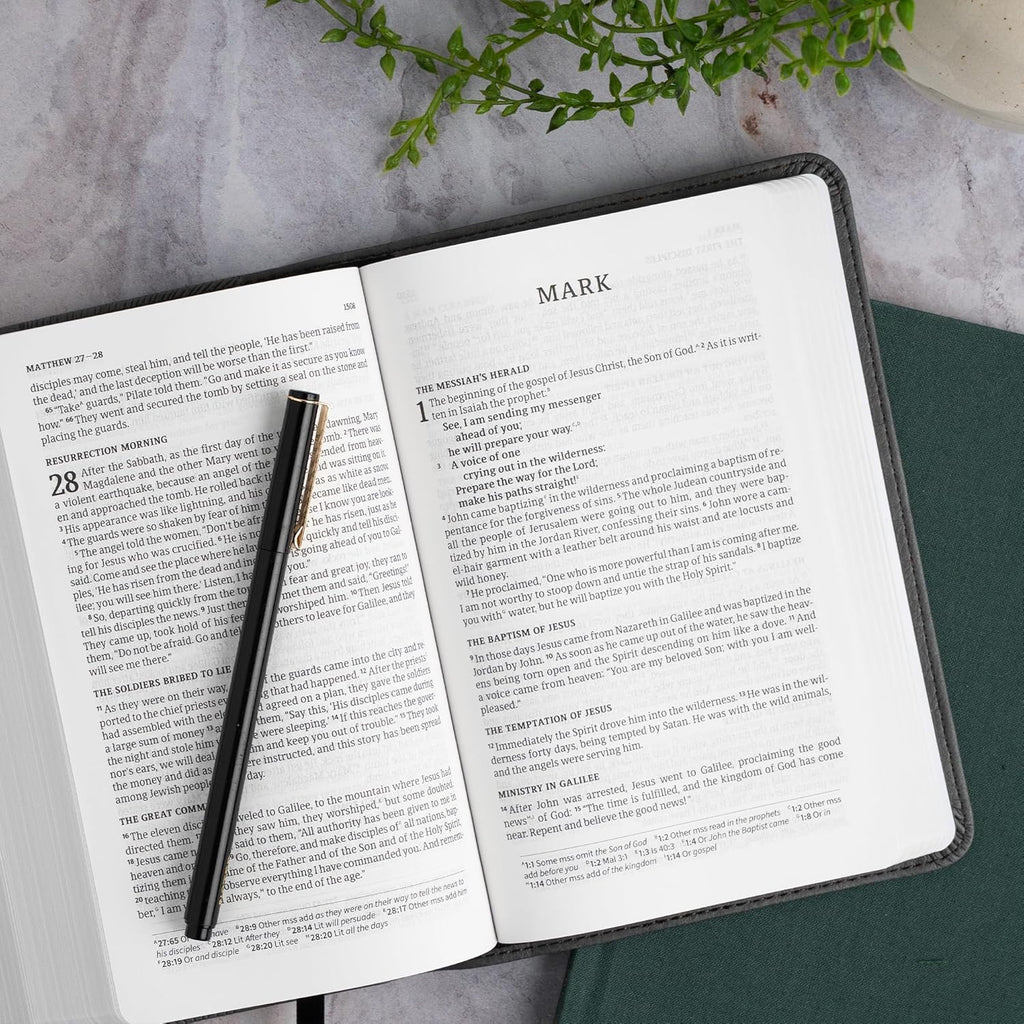 The CSB Single-Column Compact Bible provides a wonderful, single-column reading experience in a convenient compact trim size that can easily fit in a purse, backpack, or tote bag so it is always accessible when traveling or on the go.