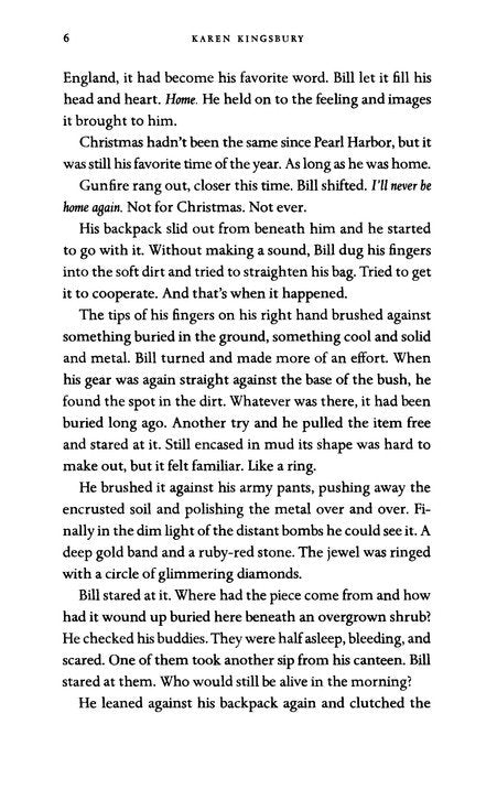 While searching for her family's long-lost heirloom ring, military widow Vanessa Mayfield meets handsome antique dealer Ben Miller. The two are drawn to each other and forge a friendship that soon becomes a deep and breathtaking romance. But neither are sure that what they've found can last.